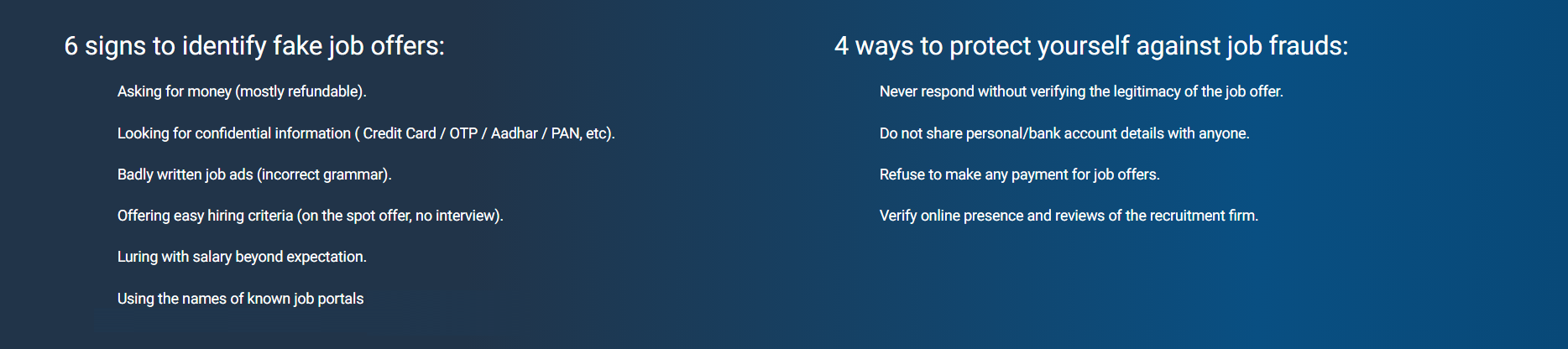 We value the trust you place on theatpl.com and are committed to making your job search a safe and fraud-free experience on our site. However, in the wake of an increasing number of instances of fake job offers, we suggest you to be cautious of fraudulent emails and calls.